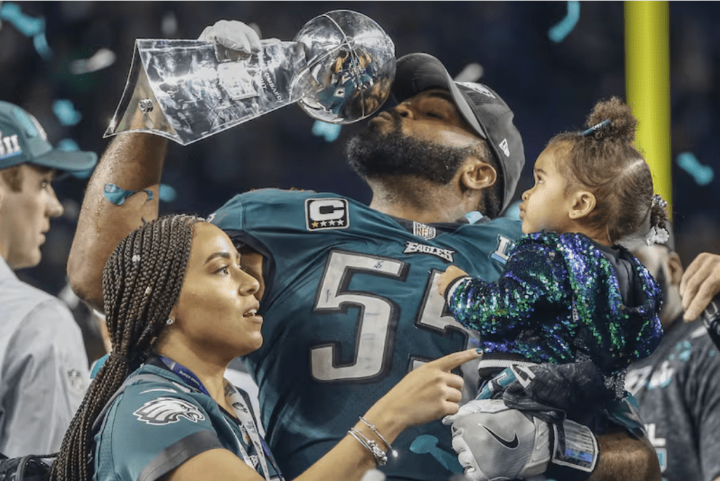 A.J.’s relationship with his best friend, Jalen Hurts, was under the media spotlight all season. The media tried desperately to send Eagles fans into a spiral over whether on-field struggles with the passing game were bleeding into their years-long friendship and affecting them off the field. But A.J. and Jalen proved them wrong when it mattered the most. Down the stretch, the passing game performed well when it needed to, especially in the Super Bowl when the Chiefs stacked the box against Saquon Barkley and forced the Eagles to beat them with a strong passing performance. Let’s not forget that A.J. Brown’s regular season stats were 67 receptions for 1,079 yards and seven TDs – despite a historic season for the running game.