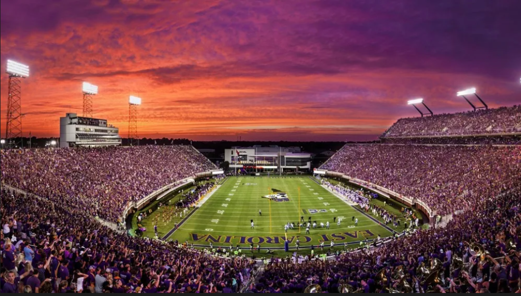 ECU has never really been known as a consistent powerhouse football school, so I’m often reminded how lucky I was to be there between 2012-2015. This was the height of the Pirates’ Ruffin McNeill era. In 2014, I watched Shane Carden throw a game-winning touchdown with 16 seconds left in a game against 17th-ranked Virginia Tech in Blacksburg. This came the week after the Pirates almost stunned in South Carolina, and a week before they notched a 70-41 victory against in-state rival UNC underneath the most brilliantly purple sky. ECU entered the top 25 that week, and I was on top of the world.